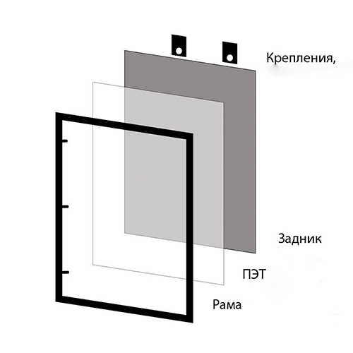 Вставка – это то, что закрывает изображение. Вставка выполняет две роли: защитить вложение внутри рамки и быть достаточно прозрачным чтобы вложение легко просматривалось. Чаще всего вставки делают из стекла и пластика (ПЭТ / ОРГ стекло). Стекло дает рамке чувство тяжести и более дорогой вид. За счет того что стекло само по себе абсолютно плоское, под него лучше помещать сертификаты, дипломы и фотографии. Пластик отличается лёгкостью, а также в случаи падения рамки не разобьется. За пластиковую вставку лучше класть простые информационные материалы – тексты, схемы и графики.