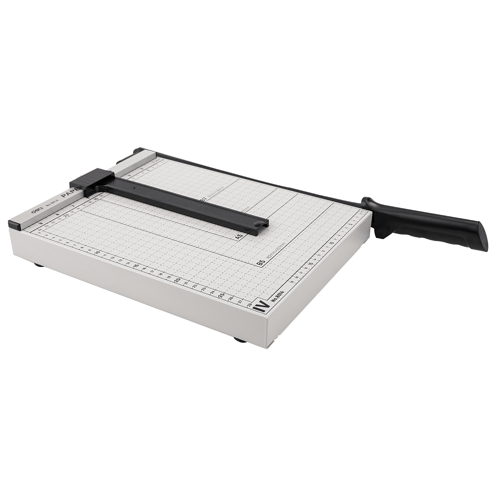 Компактный резак сабельного типа. Стабильный металлический стол и нескользящими резиновыми ножками для устойчивого положения. Практичные выемки-захваты, удобная разметка форматов на столе с делениями в миллиметрах вдоль режущей кромки облегчает выравнивание разрезаемого материала. Две угловых приставки с мм-шкалой для точной резки под 90°.