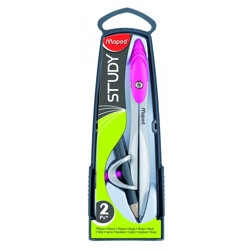 Циркуль Study 120 из цинкового сплава с эргономичной головкой, с универсальным держателем, в пластиковом футляре. В комплекте - карандаш. Металлические штанги.